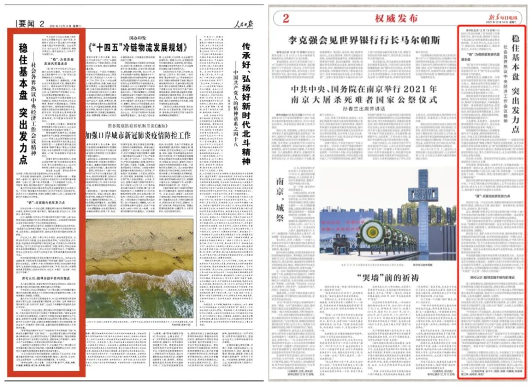 ▲《人民日?qǐng)?bào)》《 新華每日電訊 》( 2021年12月14日 )